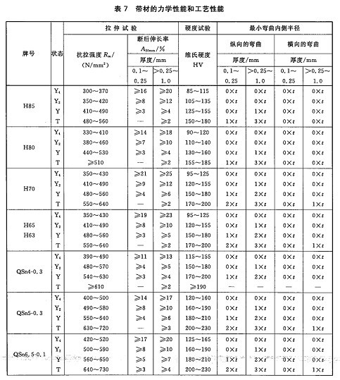 縱向室溫拉伸試驗、硬度試驗、90度彎曲試驗條件及性能要求,應(yīng)達到下表規(guī)定: